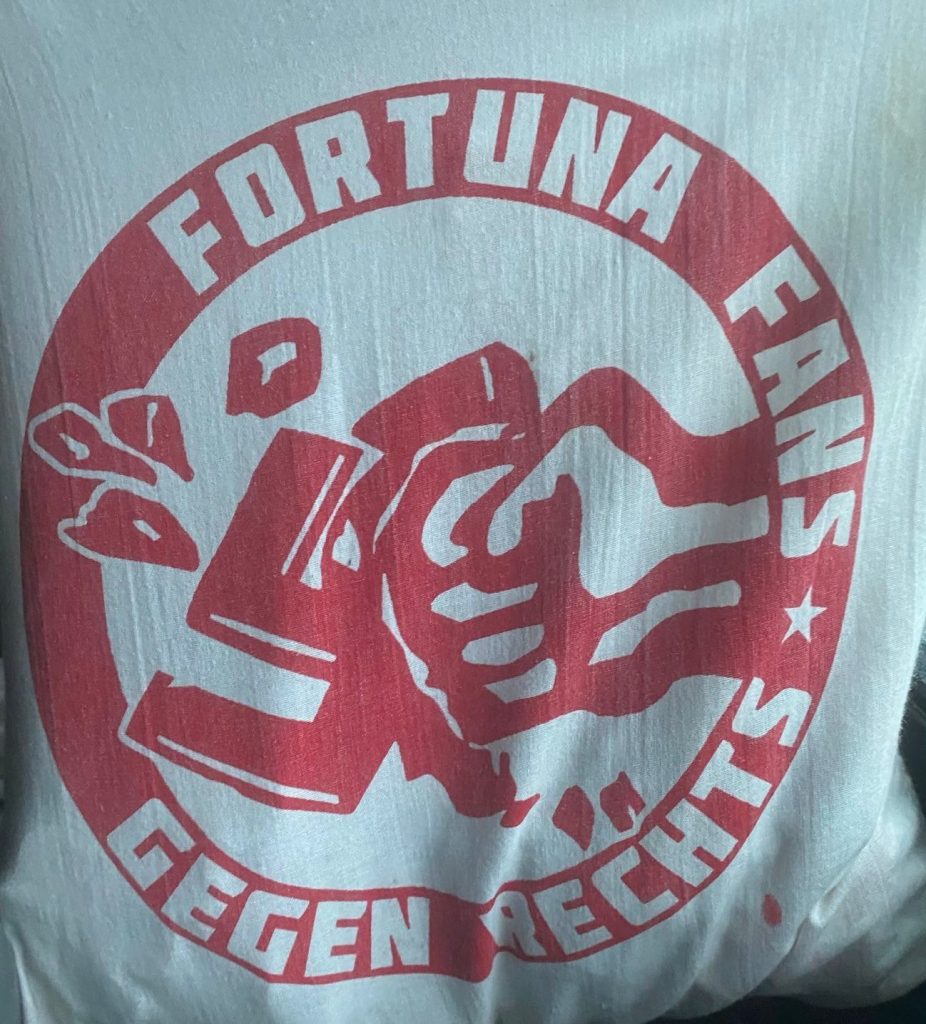 Doch die Situation wurde sogar richtig absurd, wie die Fanhilfe berichtet: „Im Verlauf der Kontrolle fotografierte eine Beamtin Beutel der Gruppe mit dem Schriftzug „Fortuna-Fans gegen rechts“ und einem entsprechenden Motiv ab. Laut Polizistin bestünde der Anfangsverdacht einer Straftat, da sie dort ein Hakenkreuz erkennen könne.“ Allerdings fügt die Fanhilfe, bei der sich auch Anwält*innen ehrenamtlich engagieren, an: „Entsprechende Motive sind weit verbreitet und klar in den Kontext einzuordnen, zumal kein vollständiges Hakenkreuz sichtbar ist, sondern ein zerschlagenes.“